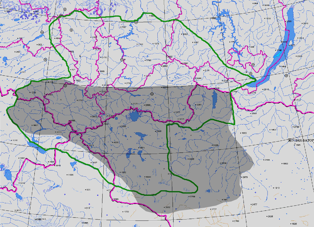 ГЕОГРАФ. АРЕАЛ: Плато Чулышманское, хр. Колыванский, хр. Иолго, котловина Чуйская, Саяны (1-4).
