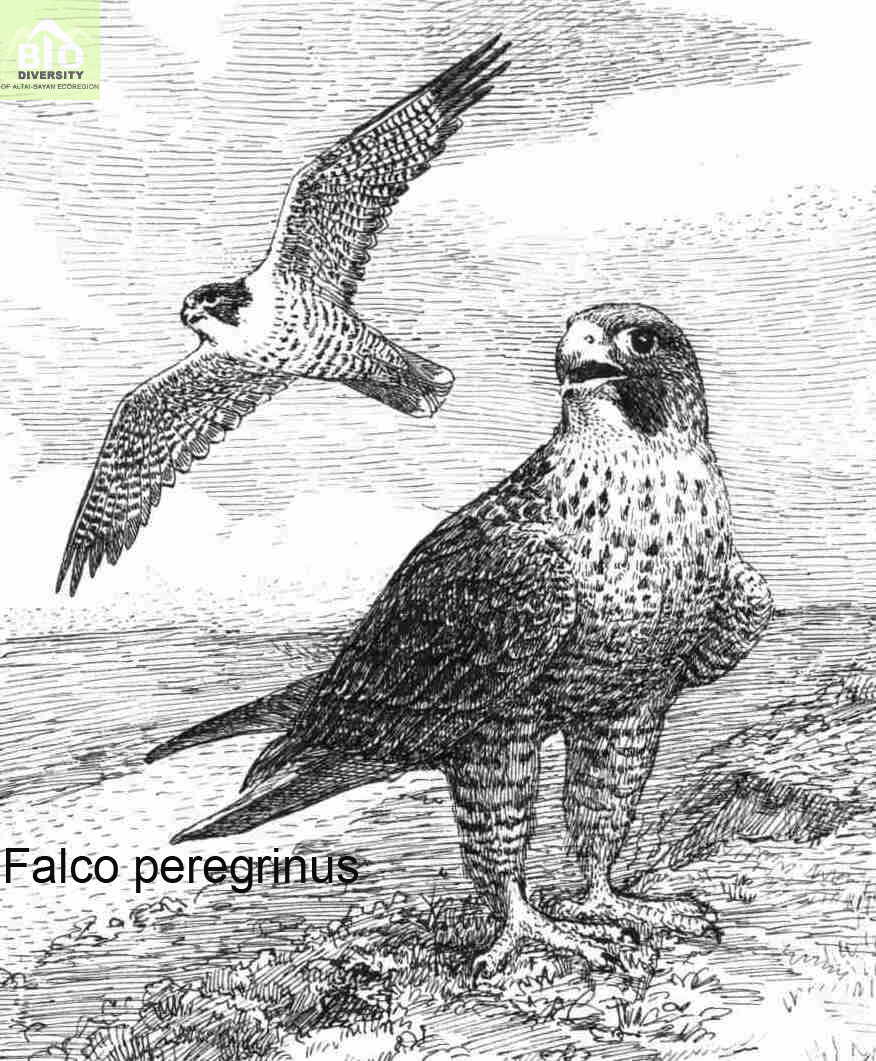 ДОП. ИНФОРМАЦИЯ Алтайская популяция зимует, вероятно, в Южной Азии. Виду свойствен гнездовой консерватизм: пары постоянны, гнездятся по многу лет в одном месте. Гнезд, как и все соколы, не строит: занимает готовое прошлогоднее гнездо хищников или врановых птиц. На карнизах и уступах скал или береговых глинистых обрывах может занимать гнездо другой птицы либо обходиться без него, разгребая небольшое углубление лапами. В кладке 2-4 яйца, в Алтайском крае чаще 2-3. Насиживают обе птицы, но больше самка. При искусственной инкубации птенцы вылупляются на 32-34-е сутки. Насиживание с первого яйца, поэтому птенцы разновозрастные. Они беспомощны, в белом пуху и долго опекаются родителями. Во время насиживания и первое время после вылупления забота о добывании пищи лежит на самце. Самка до 4-х недель почти не отлучается от гнезда. Птенцы сидят в гнезде 6-7 недель, а в 8-9 недель уже неплохо летают и начинают охотиться, хотя взрослые их подкармливают до отлета. По данным из Тувы, в среднем на пару вылетает 1,8-2,0 слетка. Половой зрелости сапсан достигает не ранее 2-х лет (20). Известная в природе продолжительность жизни – 15 лет. Сапсан – специализированный орнитофаг, который бьет птиц в воздухе. Видовой состав жертв разнообразен. В Алтайском крае в добыче его доминируют врановые (серая ворона, грач, галка Corvus monedula, сорока Pica pica), кроме того, сизый голубь, клинтух Columba oenas, большая горлица Streptopelia orientalis, скворец Sturnus vulgaris, дрозды Turdus. Приемы охоты разнообразны: поднимаясь над жертвой, делает “ставку” и бьет ее когтями лап; может охотиться “в угон”, иногда отбирает пищу у других птиц. Адаптивные возможности достаточно велики: в местах с обилием грызунов в рацион включаются и они. Отмечен даже случай специализации пары на питании хариусом (1).