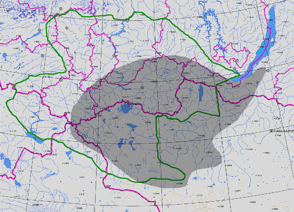 РАСПРОСТРАНЕНИЕ Респ. Алт., Респ. Тыва, Красн. кр., Респ. Бур. (1-4). Общ. распр.: Россия (Урал, Вост. Сиб., Дальн. Вост.), Монг., Сев. Ам. (3).