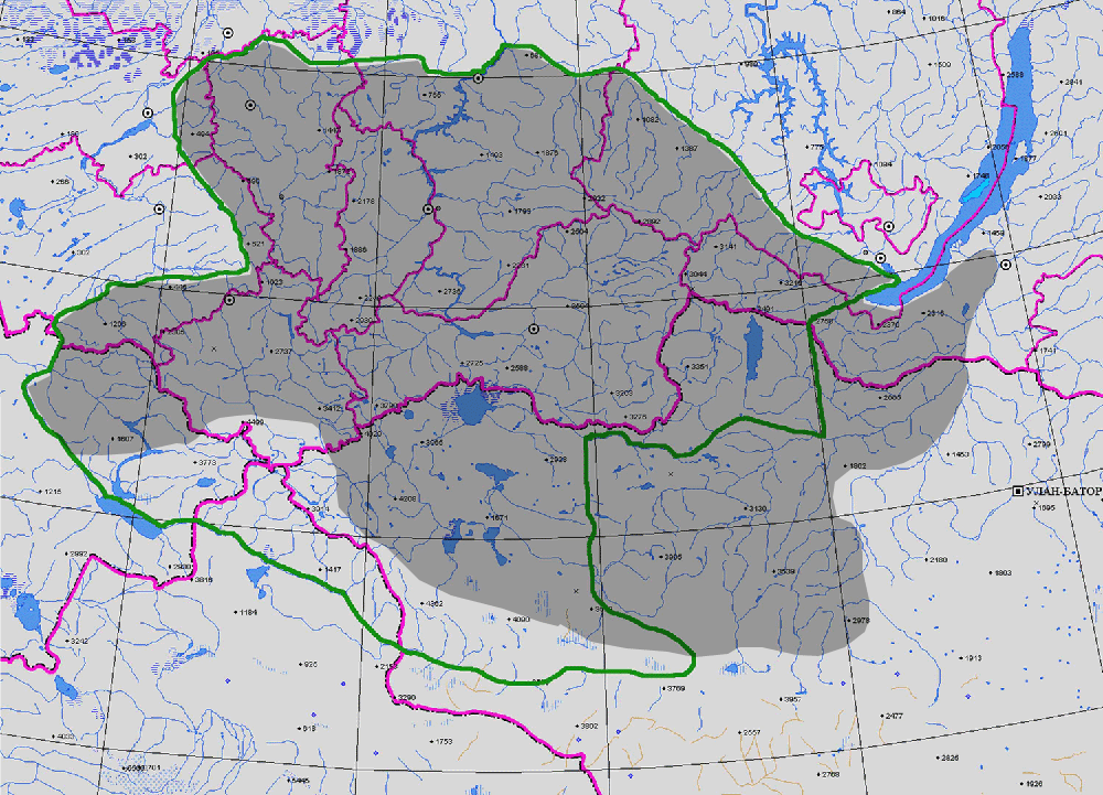ГЕОГРАФ. АРЕАЛ: Хр. Тигирекский, хр. Колыванский, г. Нанман-Уул, хр. Иолго, хр. Мажиган, хр. Курайский, котловина Уймонская (1, 2, 4).