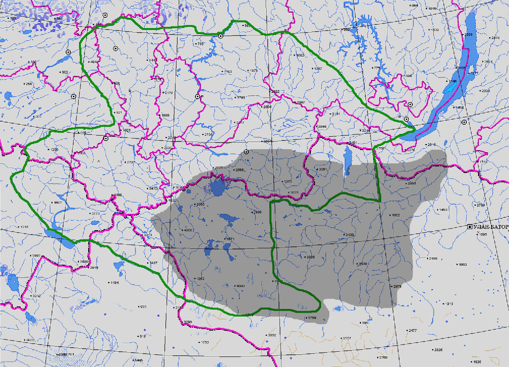 РАСПРОСТРАНЕНИЕ Респ. Тыва (1, 2, 3), Общ. распр.: Россия (Зап. Сиб., Вост. Сиб.), Монг. (1)