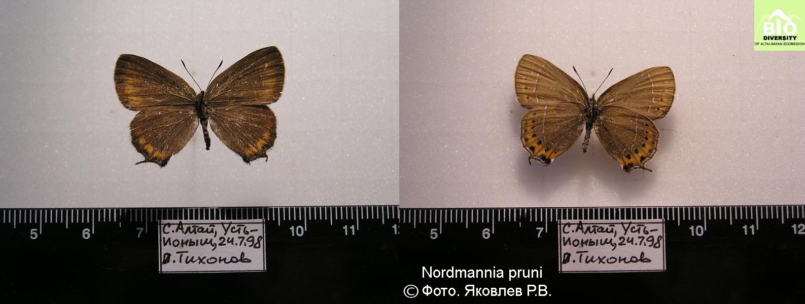 Nordmannia pruni (Linnaeus, 1758). “Pruni. P.[apilio] P.[lebeji]” – LINNAEUS, C. 1758. Systema Naturae Per Regna Tria Naturae, Secundum classes, ordines, genera, species, Cum characteribus, differentiis, synonymis, locis. Holmiae, Impensit Direct. Laurent