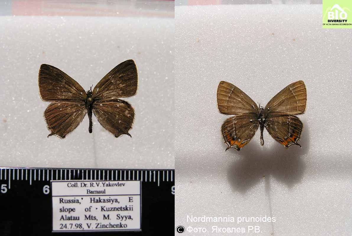 Nordmaniia prunoides (Staudinger, 1887). “Thecla Prunoides Stgr.” – STAUDINGER, O. 1887. Neue Arten und Varietaten von Lepidopteren aus dem Amur-Gebiet. — In: Romanoff, N. M. (Red.). Memoires sur les Lepidopteres, St.-Petersbourg, 3: 129–130, Pl. VI, fig.