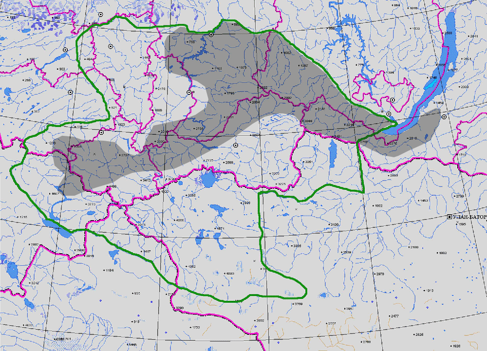 ГЕОГРАФ. АРЕАЛ: хр. Тигирекский, хр. Убинский, хр. Тункинский, Западный и Восточный Саян (1, 3, 4, 5).