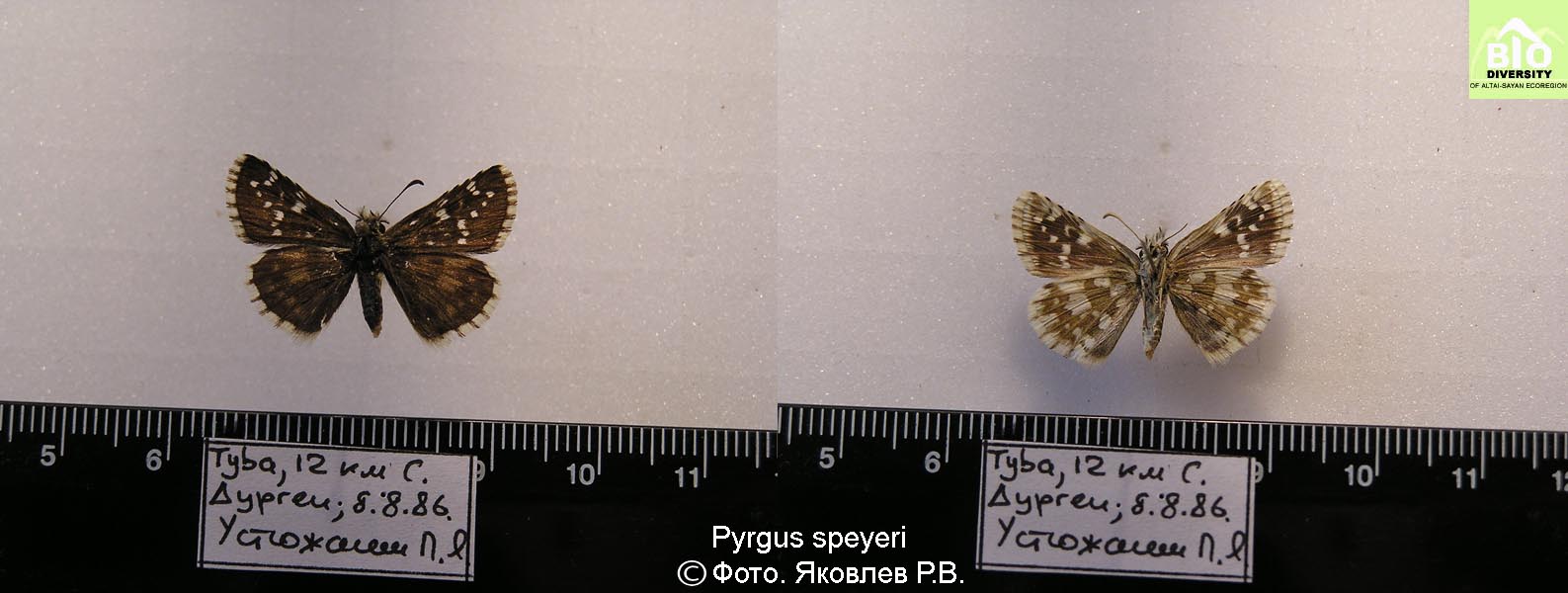Pyrgus speyeri (Staudinger, 1887). “Scelothrix Speyeri Stgr.” – STAUDINGER, O. 1887. Neue Arten und Varietaten von Lepidopteren aus dem Amur-Gebiet. — In: Romanoff, N. M. (Red.). Memoires sur les Lepidopteres, St.-Petersbourg, 3: 153–154, pl. 8, fig. 5, a