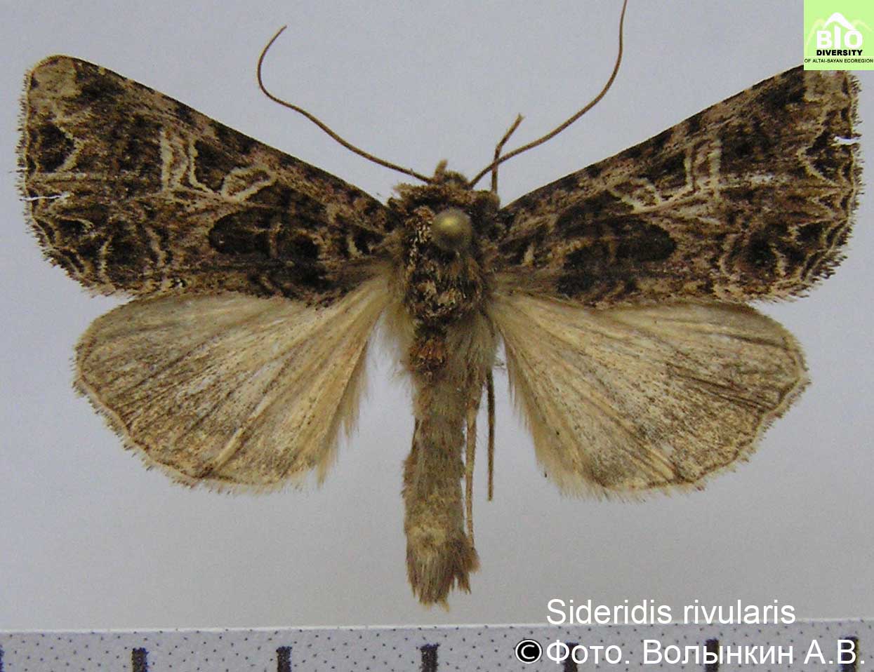 Глаза с волосками, усики простые. Голова и грудь бурые. Размах крыльев 29–34 мм. Фон переднего крыла бурый, с розоватым отливом. Поперечные перевязи плавно изогнутые, бурые. Подкраевая линия желтоватая, ломаная, в подкраевом поле несет несколько мелких бурых клиновидных штрихов. Краевая линия из черных штрихов. Краевое поле у апекса осветлено. Клиновидное пятно широкое, закругленное, черно-бурое. Круглое и почковидное пятна вытянутые, окаймлены желтоватыми чешуйками, Задними краями направлены друг к другу. По костальному краю ряд темных косых штрихов. Бахромка пестрая. Заднее крыло коричневато-серое, с нечеткой серой терминальной каймой, тонкой перевязью и дискальным пятном полулунной формы. Бахромка немного светлее фона.